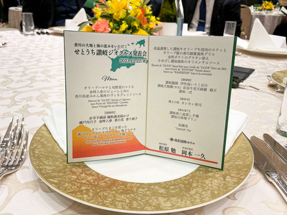 香川の地形や気候風土と、地域に根差す食文化の関連性に着目した料理「せとうち讃岐ジオグルメ」の発表会が12/22(金)、高松国際ホテルにて開催されました。